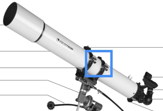 找到主镜上近似与镜筒平行的两处凸起,或使用镜筒边缘,采用类似射击瞄准的方法裸眼对准太阳,过程中短时裸眼目视太阳并不会带来太大问题,或者在视线最前方用手举一个巴德膜来保证安全。此方法只能粗略对准,可先用视野较大的目镜,以便在粗略对准的情况下在视野中发现太阳。