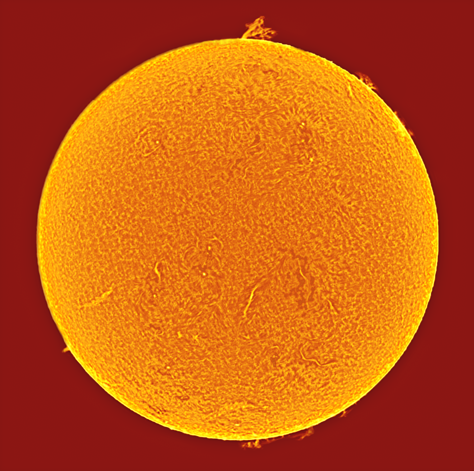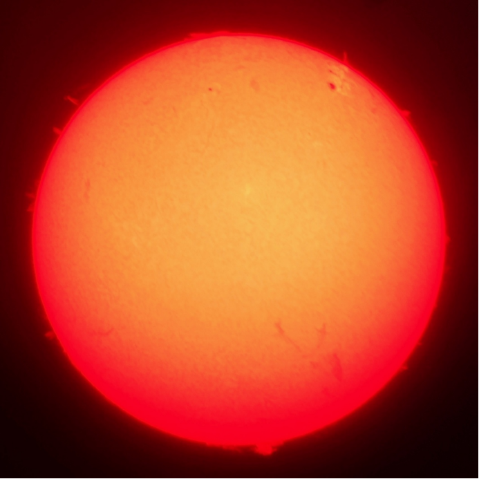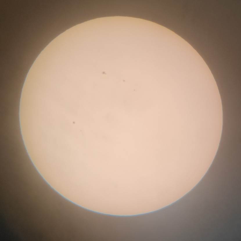 在加装减光措施后,常规望远镜可以看到非常明显的太阳黑子,使用日珥镜还能看到日珥和色球层气流。