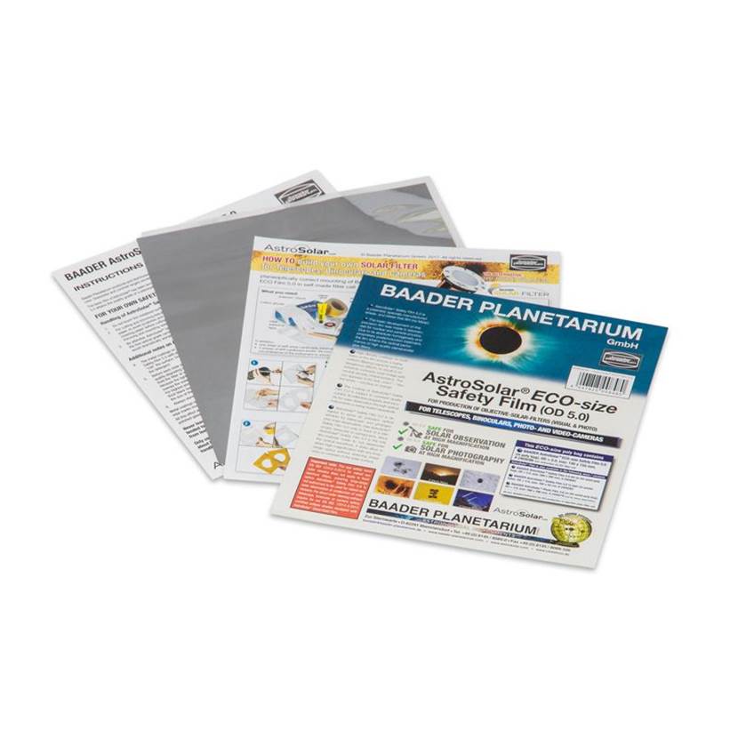 巴德膜是最具性价比的太阳观测设备之一。巴德膜原名AstroSolar(“巴德膜”则因巴德公司生产而得名),是一种很薄的金属化塑料膜,看起来很像铝箔,常见规格为ND5.0(ND10^5),能将入射光线衰减10万倍,并能反射大部分红外线和紫外线。巴德膜适用于裸眼观测和几乎任何望远镜,将5.0的巴德膜扣在望远镜/相机镜头前面,就能安全地用肉眼观测太阳,或者用一般的相机拍摄。使用安装巴德膜的望远镜可以看到白色大球一样的太阳光球层,并能清楚看到太阳黑子。
