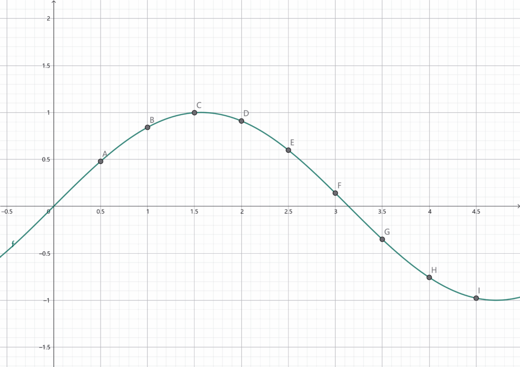 我们可能只能采集到一些离散的点,比如我们假设每隔0.5采样一个点